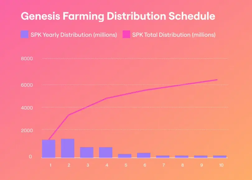 SPK adalah token asli dari Spark, dengan total 10 miliar keping, yang 10 miliar keping token SPK ini akan didistribusikan dalam 10 tahun pertama.