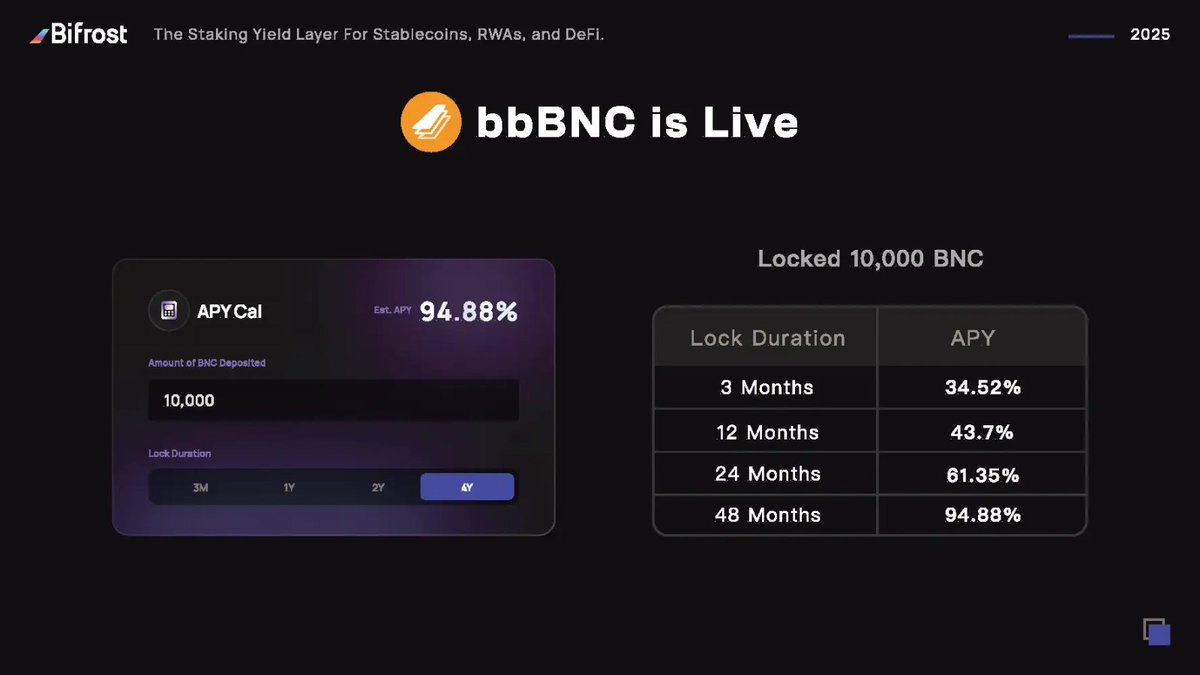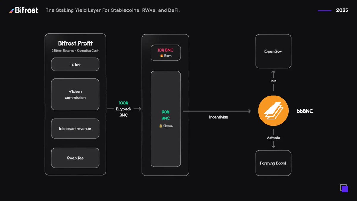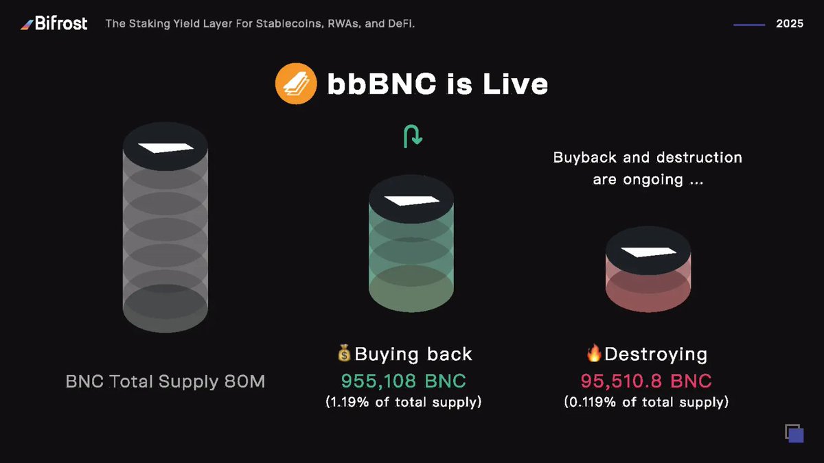 Bifrostの透明性へのコミットメントは明らかです。バイバックエンジンは11月1日に稼働し、すべてのバイバック記録は公にアクセス可能です。ユーザーは$bbBNC をミントし、bifrost.io/bbbncで収益シェアを請求でき、長期的なステークの具体的な利益を体験できます。この投機的価値からステークベースのガバナンスとイールドへの移行は賢明な進化であり、プロトコルを積極的にサポートし、保護する人々によって価値が捕らえられることを保証します。