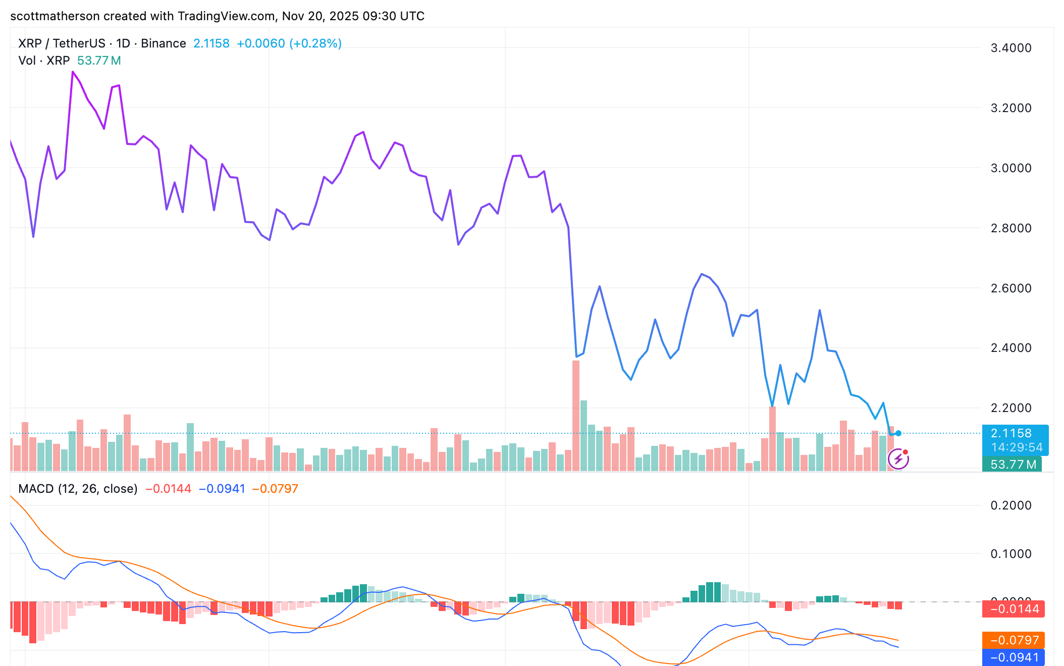 この計算は、ビットコインがどれほど先を行っているかを強調しています。XRPはビットコインの総評価額の約7%に位置しており、つまり、この資産は現在の水準から14倍以上の価値上昇が必要であることを意味します。簡単に言えば、1,000 XRPを保有している投資家は、そのポジションが今日の約2,140ドルから、トークンの価格が30.61ドルであれば3万ドル以上に変わることを目にするでしょう。