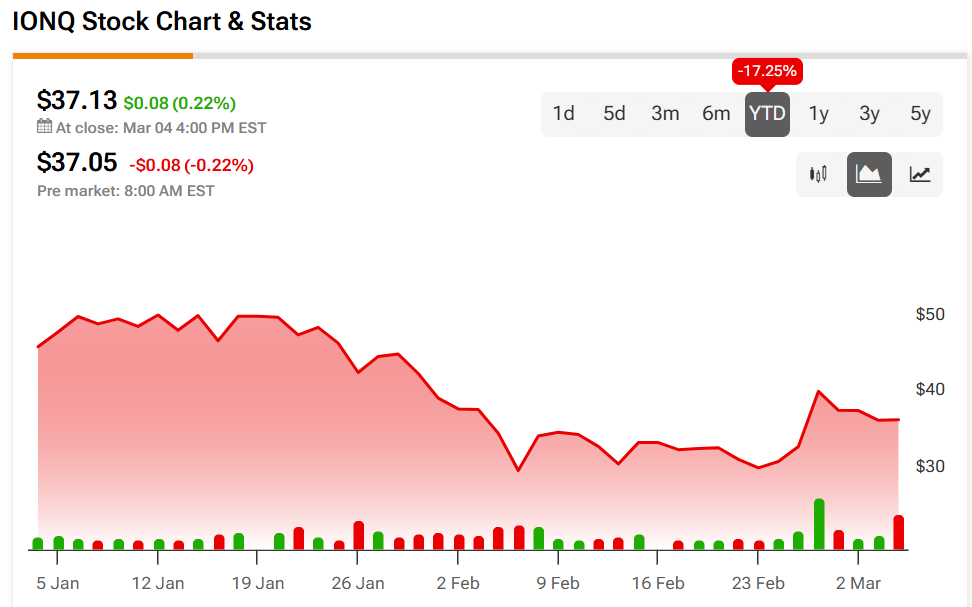 Meanwhile, IONQ shares rose slightly on Wednesday, closing at $37.13.