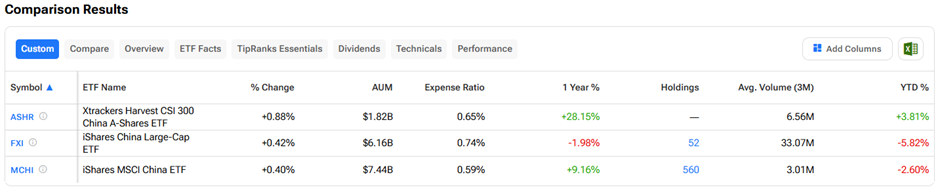 Using TipRanks’ Compare ETFs Tool, we identified iShares MSCI China ETF MCHI -1.40% ▼ , iShares China Large-Cap ETF FXI -1.57% ▼ , and Xtrackers Harvest CSI 300 China A-Shares ETF ASHR +0.06% ▲ as three ETFs that have witnessed high net outflows over the past six months. Combined, investors have pulled more than $1 billion from these three funds.