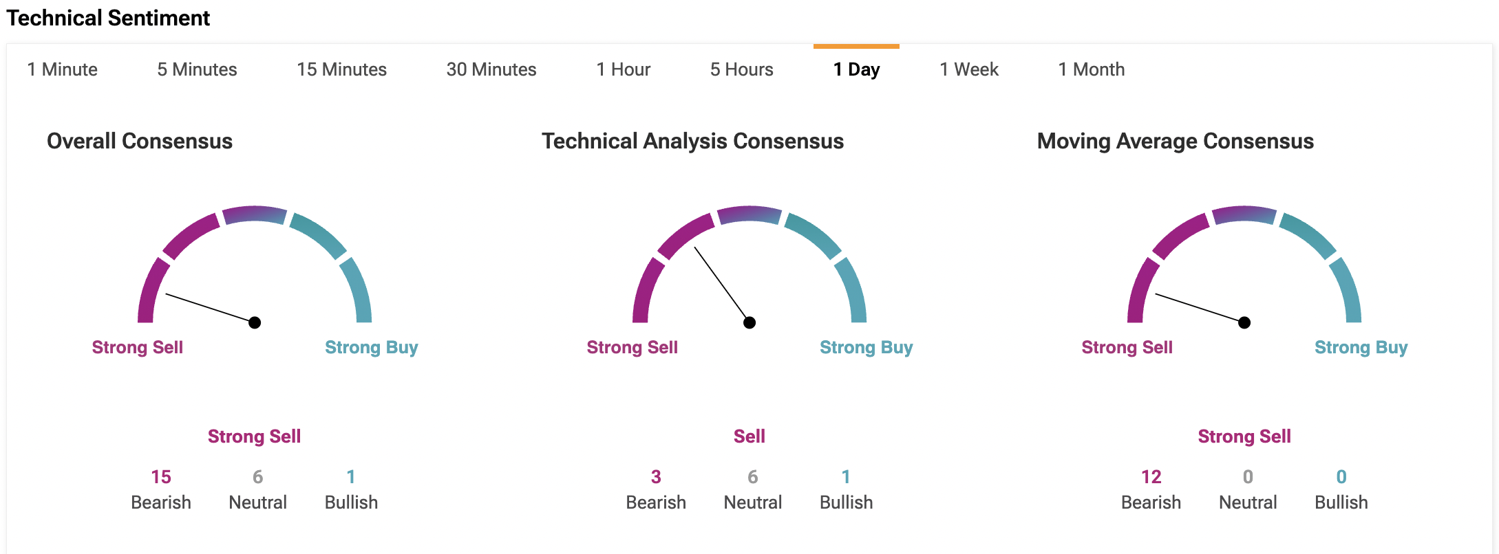 Moving Averages show an even grimmer Strong Sell consensus, with 12 Bearish indicators and zero Neutral or Bullish ones.