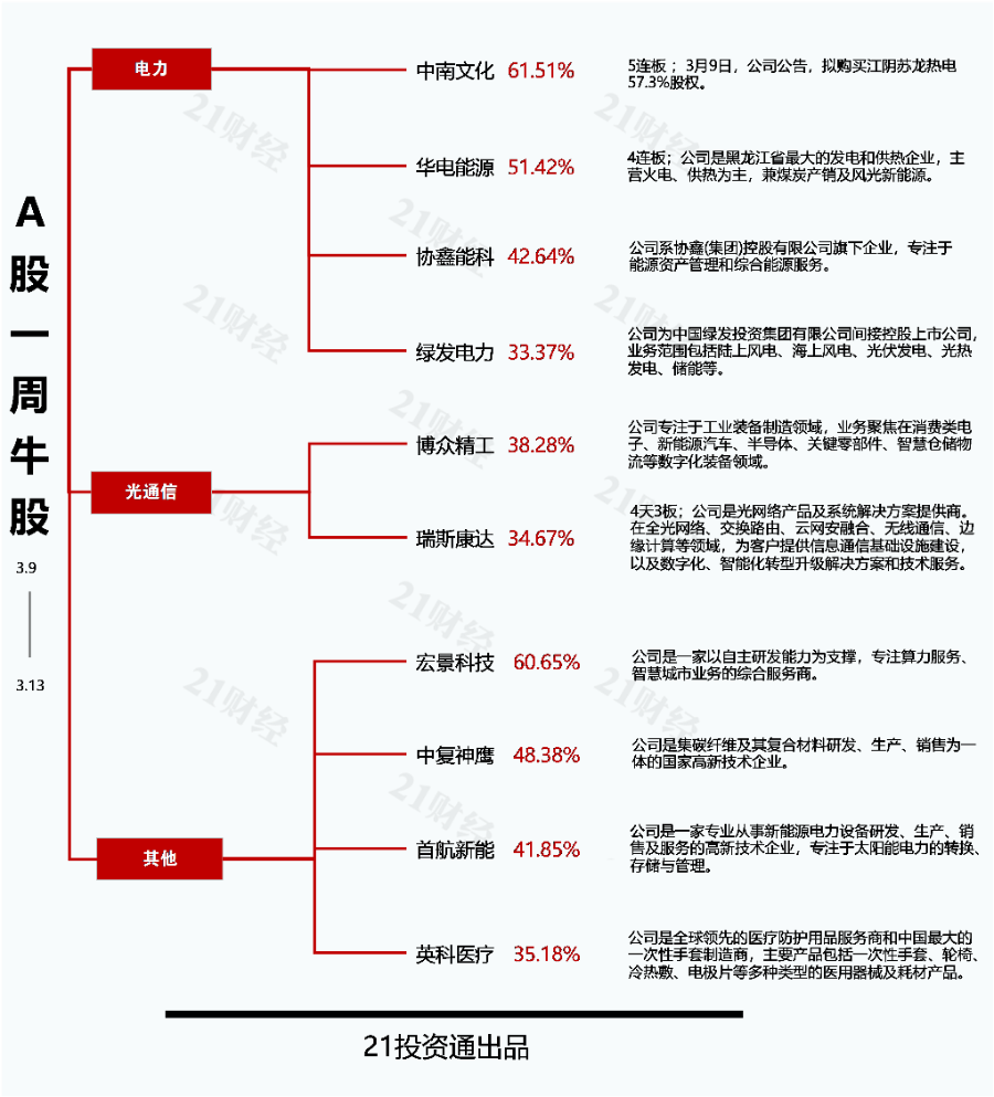 Zhongnan Culture's "whale swallows" benchmark power plant, weekly gain exceeds 60%; Huapei Power's failed restructuring faces two consecutive limit-down days | Weekly bull and bear stock panorama