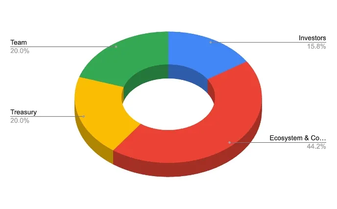 Экосистема и сообщество (44,18%): Награды для поставщиков ликвидности, трейдеров и участников управления, постепенный выпуск для содействия долгосрочному участию, избегая краткосрочных распродаж.