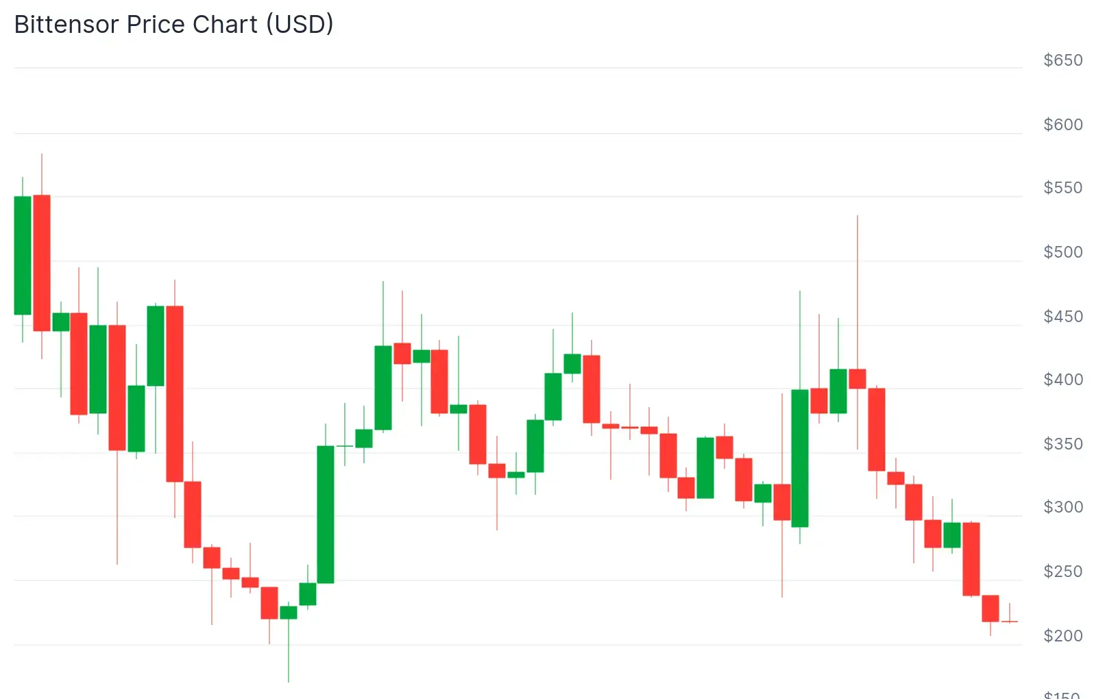Bittensor объединяет инфраструктуру ИИ с механикой предложения, аналогичной Биткоину. TAO торгуется по цене $220, что на 64% ниже своего пика в апреле 2024 года в $760. Протокол функционирует как открытая торговая площадка для возможностей машинного обучения, стимулируя развитие децентрализованных моделей ИИ и вклад вычислительных ресурсов.
