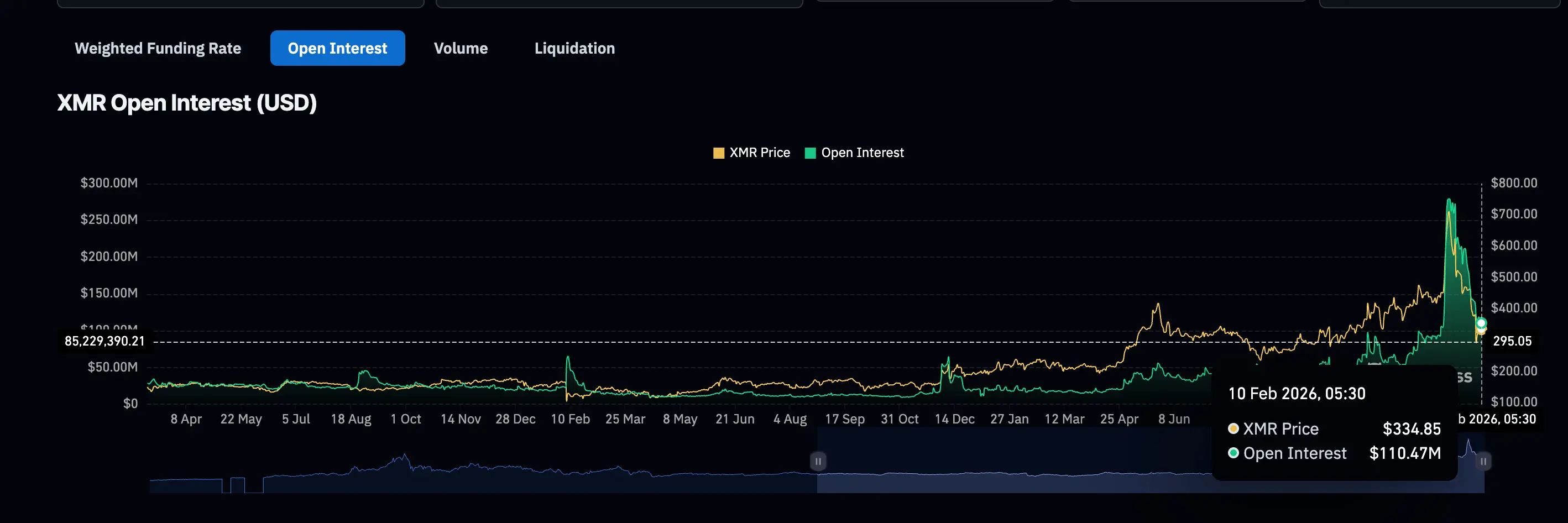 Data from the derivatives market further confirms Monero’s predicament. Open interest has sharply declined from about $279 million in mid-January to approximately $110 million as of February 10, a drop of over 60%. The rapid decrease in open interest indicates leverage is exiting the market, with traders reducing risk exposure rather than preparing for a strong rebound.
