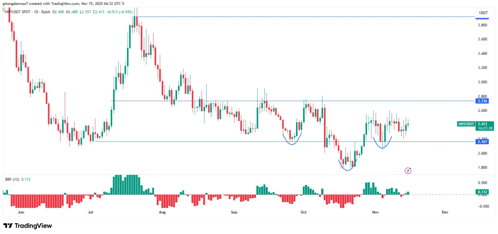 Перші етапи придбання допомогли ціні HNT різко зрости, але цей ефект, здається, сповільнився з початку листопада.