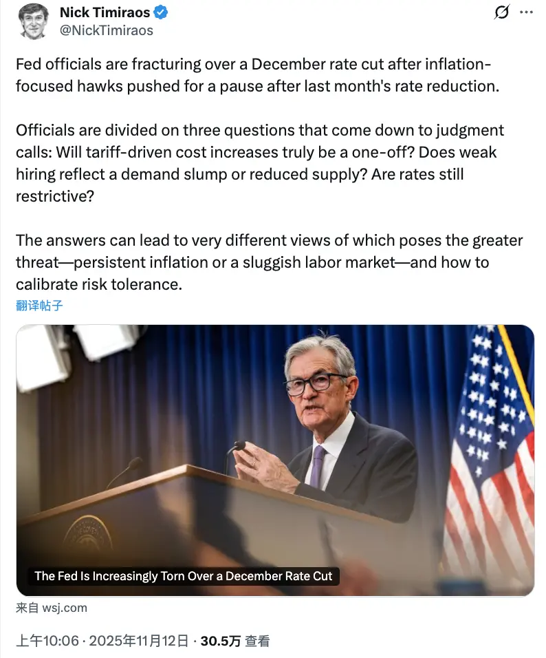 Це також пояснює, чому Morgan Stanley, незважаючи на ціль у 170 тисяч доларів, підкреслив, що «потрібно перезавантаження важелів»; чому Raoul Pal, хоч і оптимістично дивиться на 2026 рік, визнає, що «ринок буде нестабільним до початку прихованого QE». Вони всі чекають на підтверджувальний сигнал: чи зможе економіка здійснити м'яку посадку.