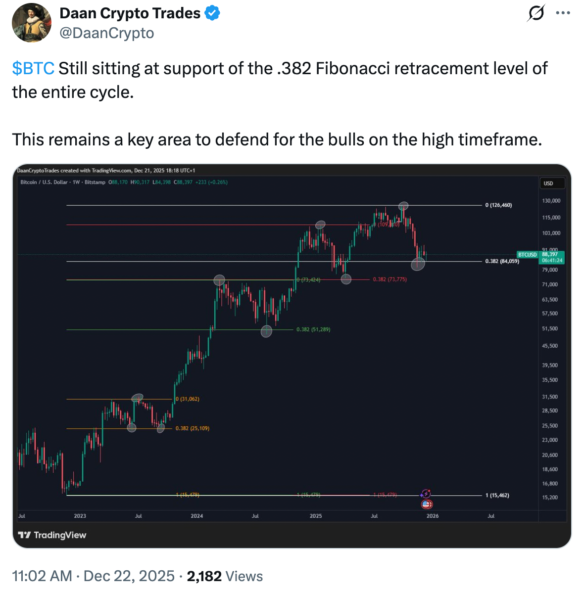 交易員和分析師Daan Crypto Trades表示,$84,000 “在高時間框架上仍然是多頭需要防守的關鍵區域。”