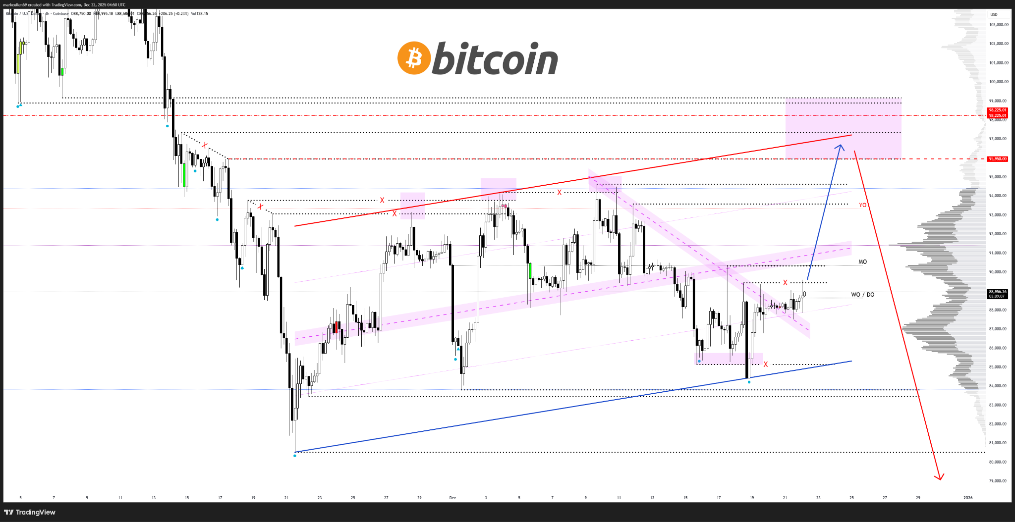 然而,並非所有分析師都預計“聖誕拉力”會發生,因爲六位數的BTC價格預測與下跌至70,000美元的警告相矛盾。