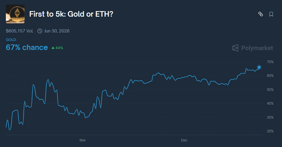 MICA Daily|ETH 被超車?預測市場:黃金價格會先達到 5,000 美元