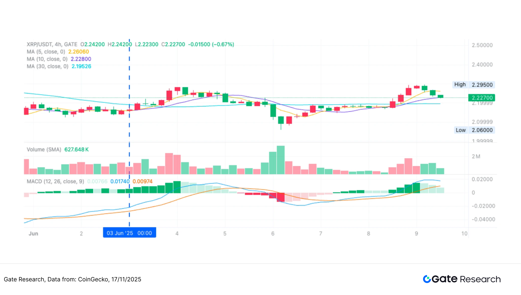 图九:XRP/USDT 策略条件触发时的实际进场位置示意图(2025 年 6 月 3 日)