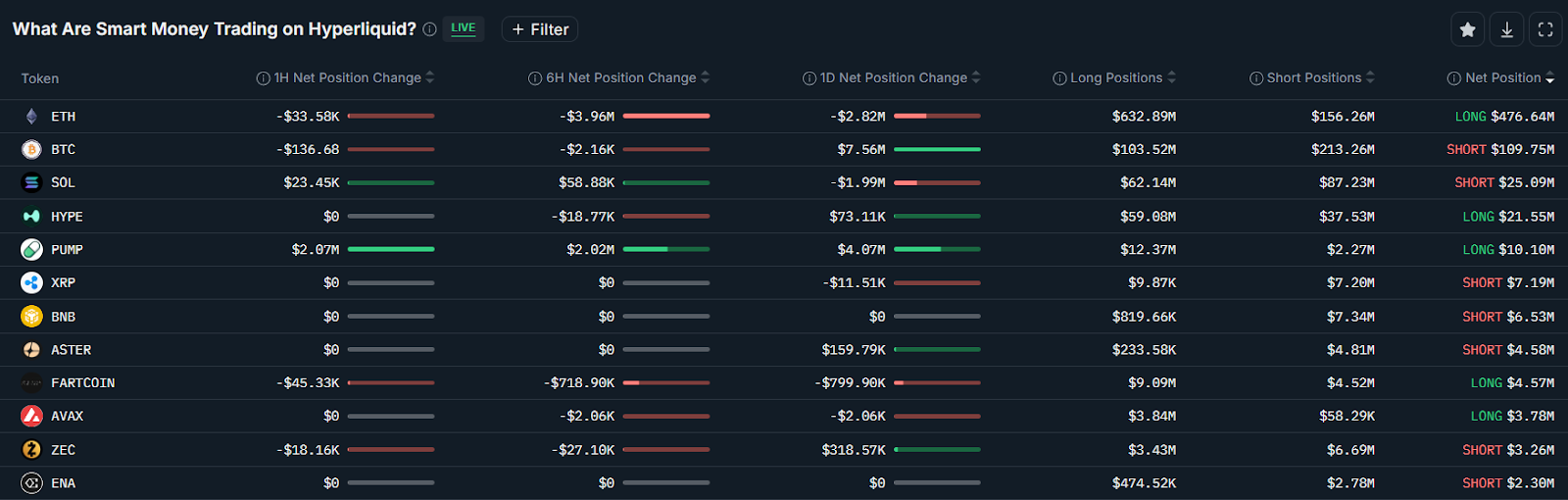 智能资金交易者在Hyperliquid上获得顶级永久期货头寸。来源:Nansen